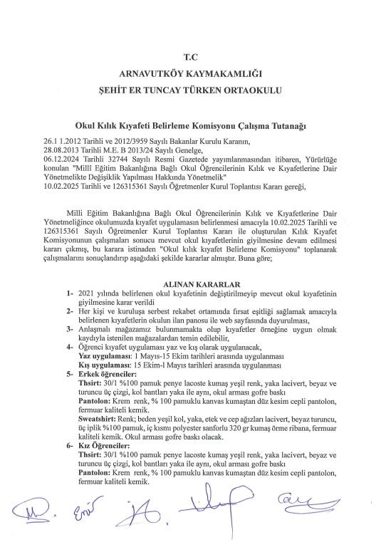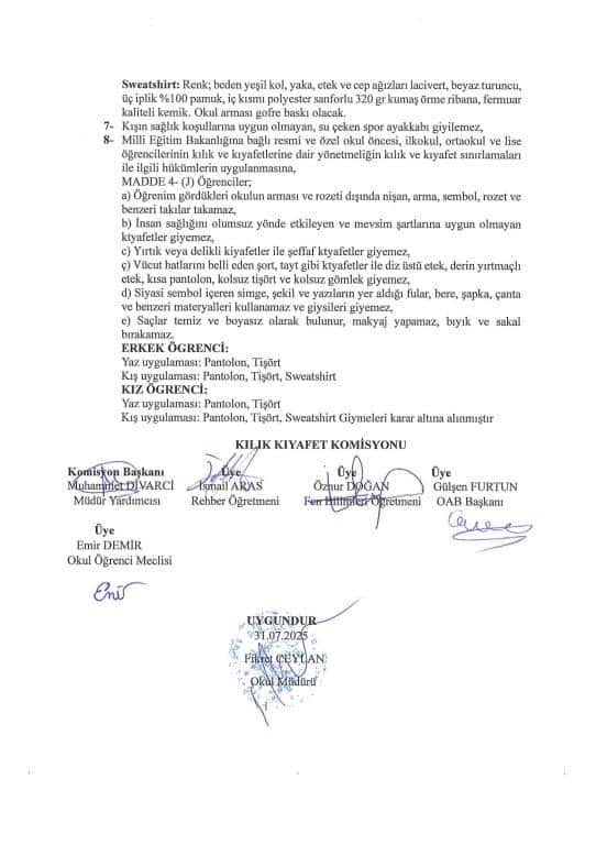 Okulumuz Kılık Kıyafetleri Belirlenmiştir
